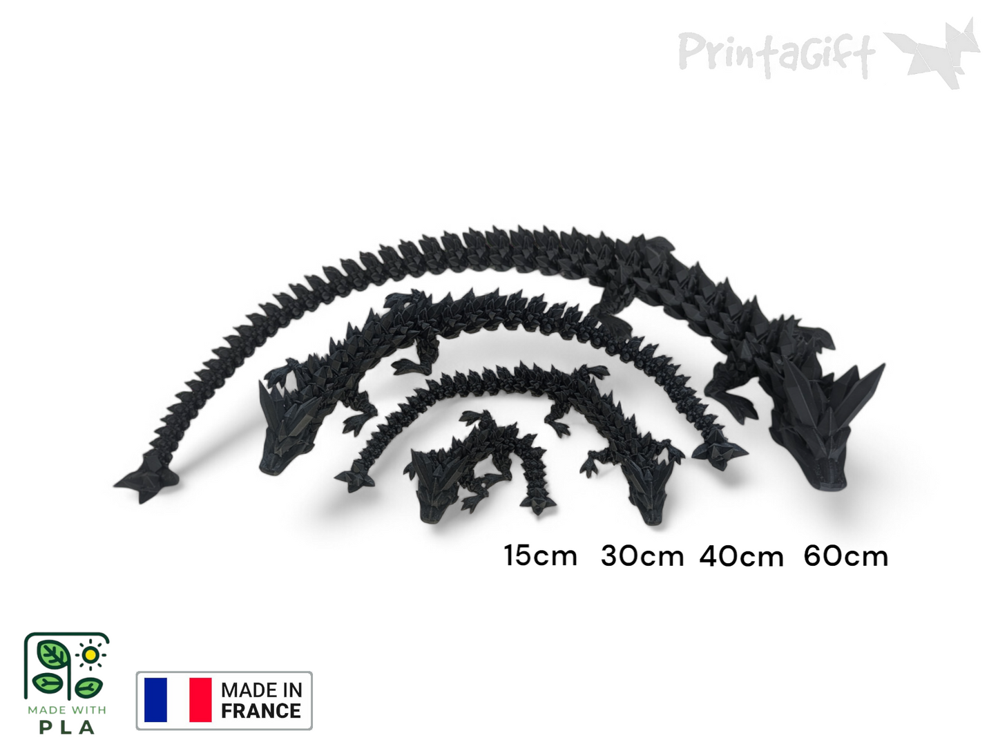 Chaque détail, minutieusement imprimé, donne vie à cette créature légendaire, parfaite pour embellir votre espace de vie ou votre bureau. Découvrez l'artisanat français avec ce dragon unique.
